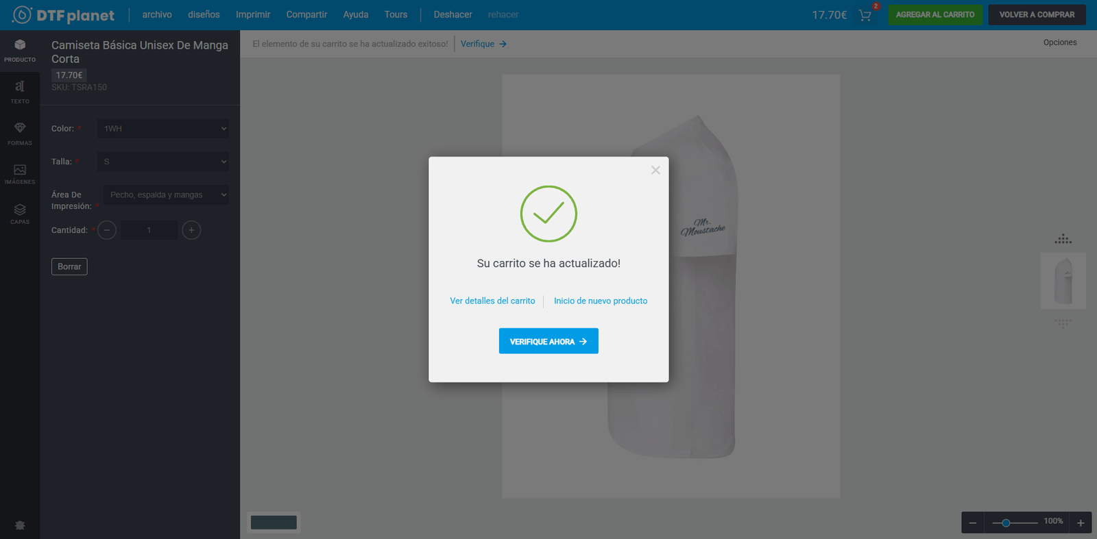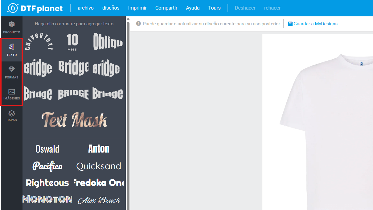 En DTF Planet, tenemos un editor básico para que puedas diseñar, o subir tus propios diseños a nuestros productos. Se trata de un proceso sencillo y que te facilitará poder ver cómo se verá tu creación sobre el producto. A continuación, te mostramos sus funcionalidades paso a paso con ejemplos prácticos.